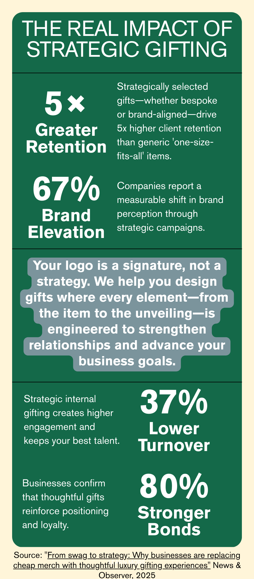 Source: "From swag to strategy: Why businesses are replacing cheap merch with thoughtful luxury gifting experiences" News & Observer, 2025
